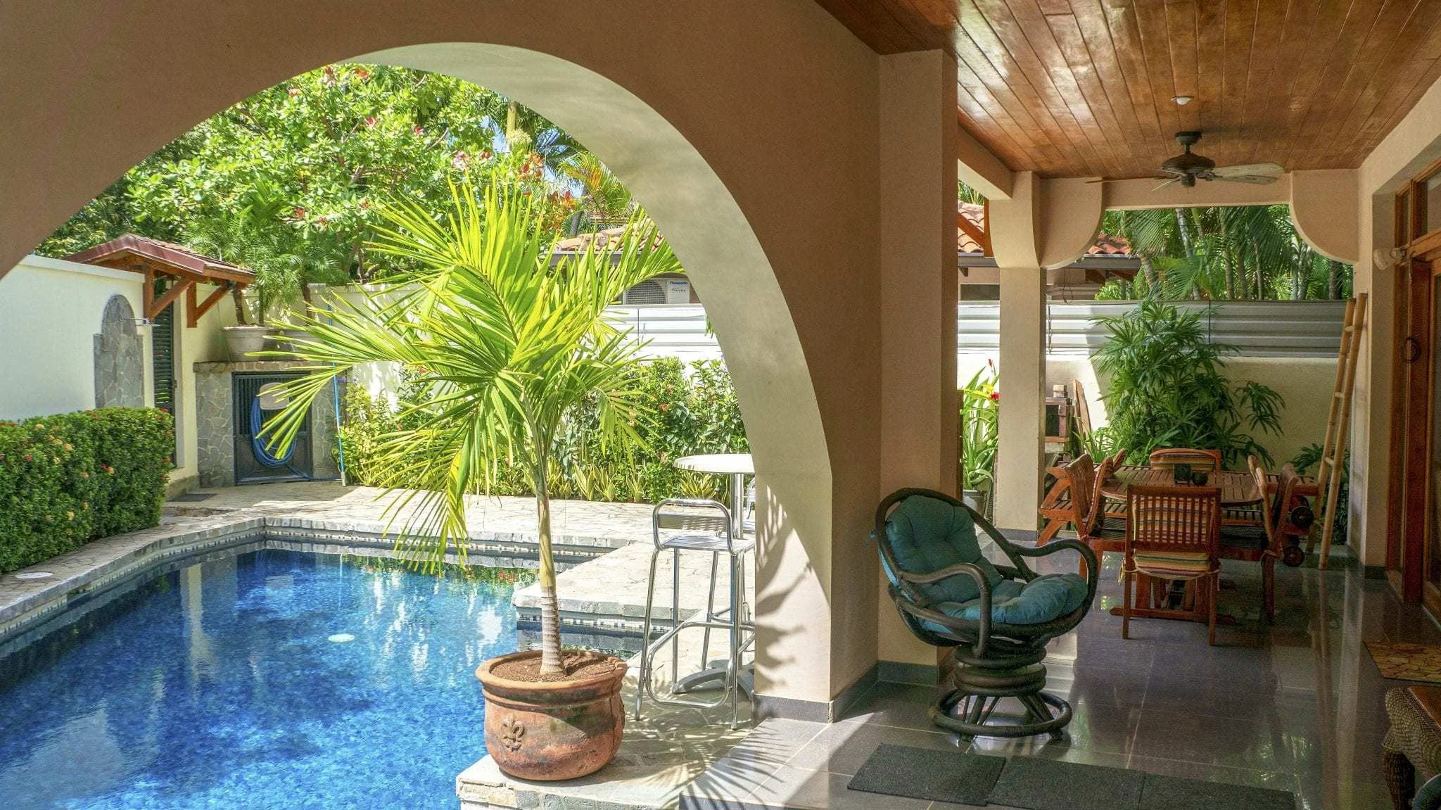 Lounge chairs and chaises are available to soak up the sun. It is the perfect place to read a book. If you get too hot you can always take a dip in the pool or move under the veranda.