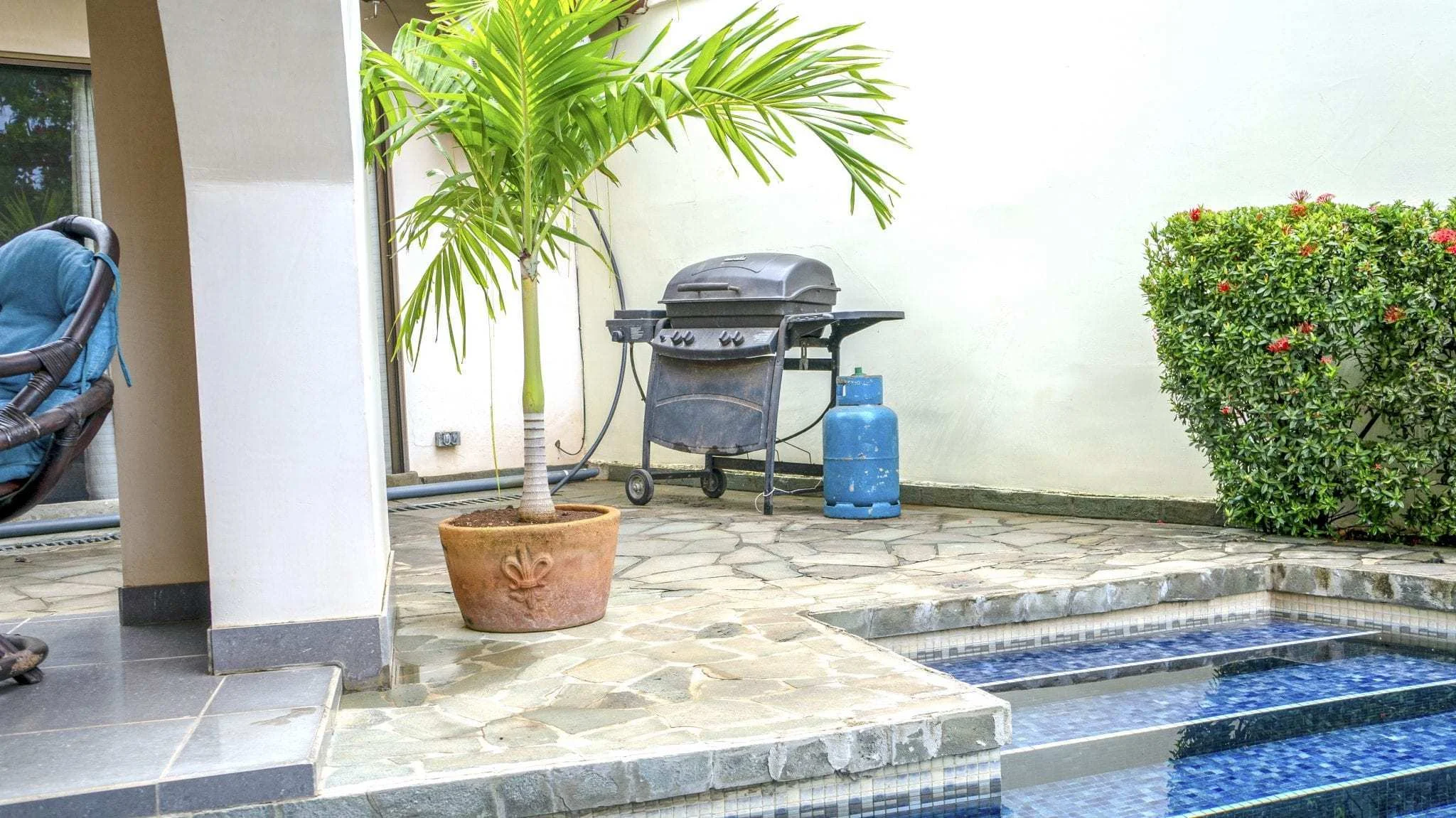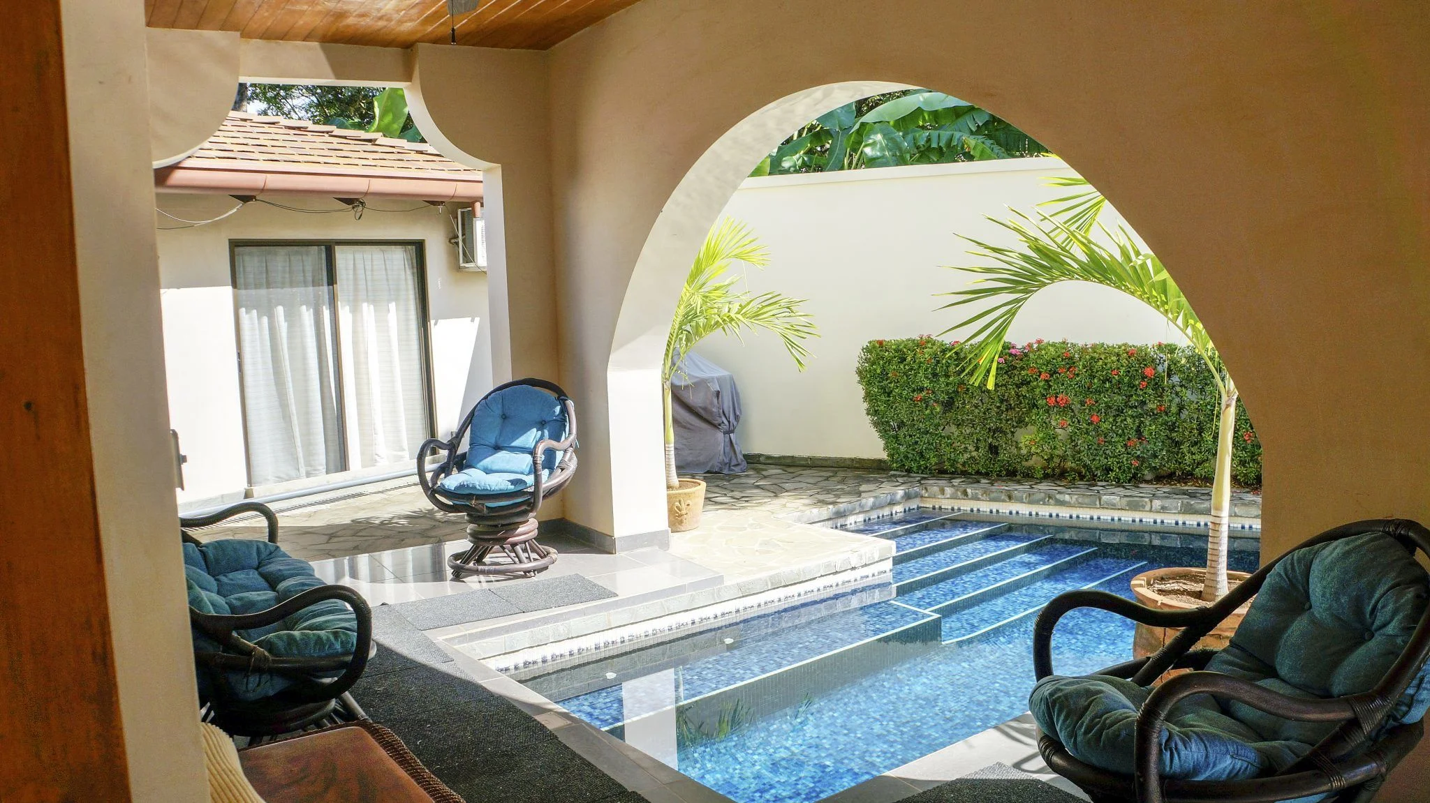 Come and relax by our pool. You can turn on the double trickle waterfall feature and enjoy peacefulness. After a dip in the pool, you can use the outdoor shower before entering the house.