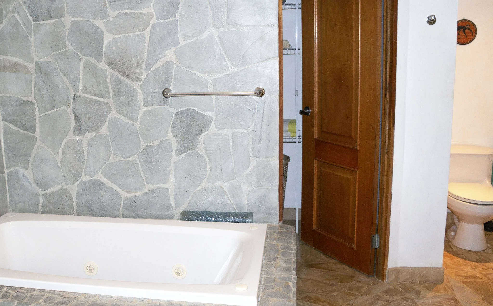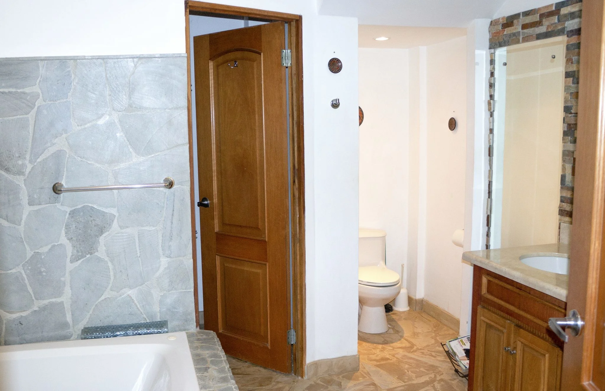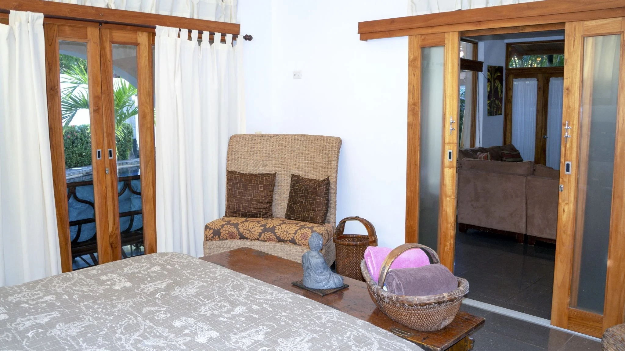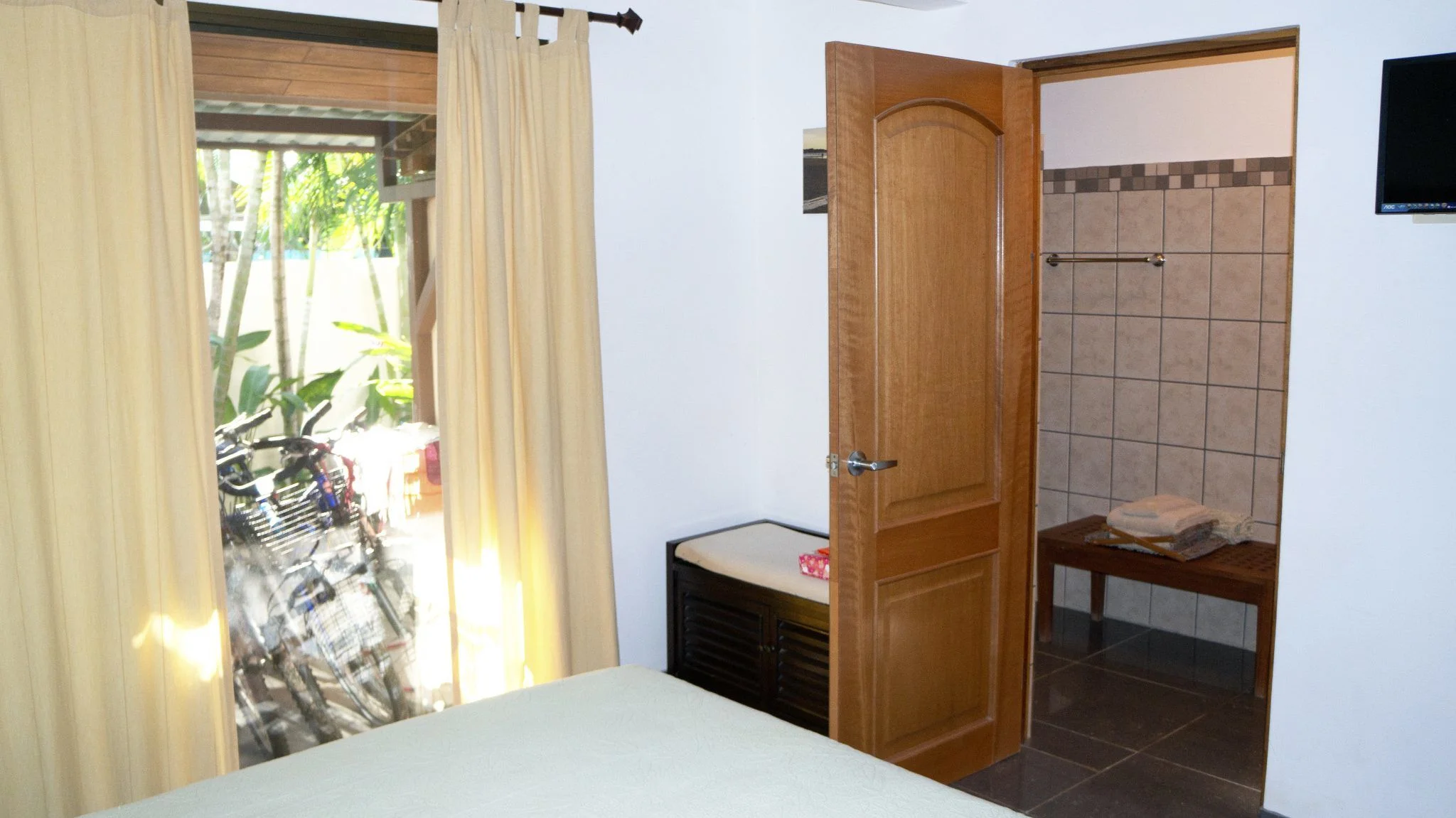 The open concept living room offers lush microfiber sofas with enough seating for 6. Read a good book, or watch TV on our 40″ LCD TV, all while catching up with friends. The living room opens out to the fully furnished veranda.